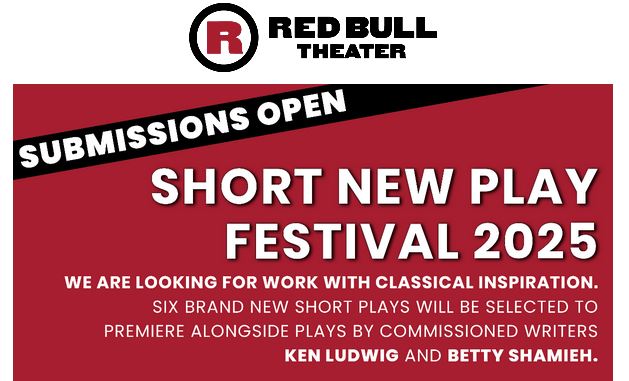 It’s that time of year again! We are looking for work with a classical inspiration. Six brand new short plays will be selected from this open-submission process to be presented alongside new plays from commissioned writers, Ken Ludwig (Lend Me a Tenor, Crazy for You) and Betty Shamieh (Malvolio, Roar). Red Bull Theater’s 16th Annual Short New Play Festival is scheduled for Monday, June 22, 2026. This year’s theme? REFINISHED