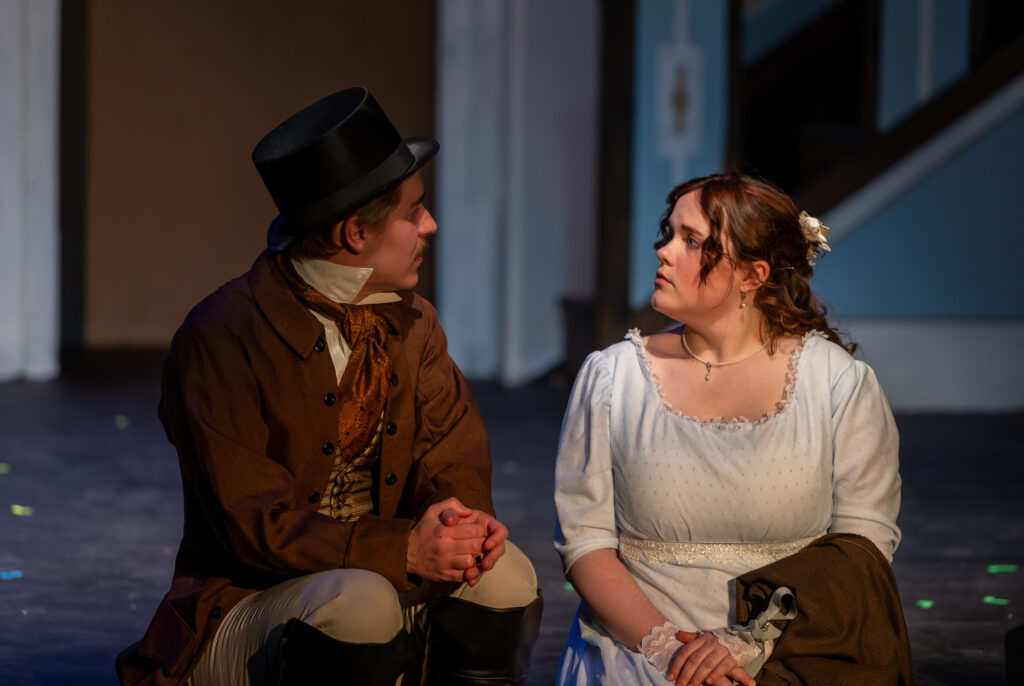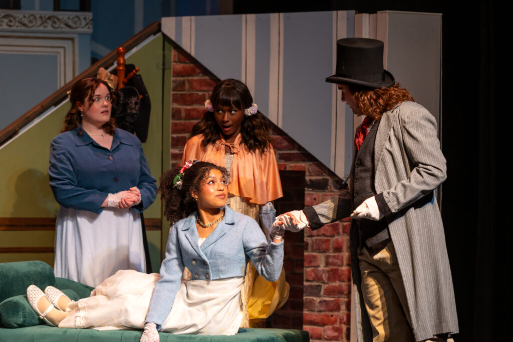 McNeal is more than just a play premiere. It also celebrates the grand opening of the Herro-Franke Studio Theater. It replaces the Stiemke Studio Theater. And it is a major improvement…better seating (comfy!)…better and additional restrooms…and a real bar and better traffic flow through the lobby. And for this very first show, the seating bowl is shaped in a L-shape with the stage occupying one corner of the studio. And for McNeal the gnomes and elves in the Rep shops have created a rotating stage that facilitates the change in scenes and moods and environments. And they are breaking the third and fourth wall. I don’t want to leave out the lighting and sound crew who project and highlight the action but project scenic backgrounds with our change of locales…some of it AI generated since I recognized some buildings but they didn’t seem to be where they actually reside…and city noises in city scenes and rustic noises in rural ones. Sounds easy to miss given the concentration required to fully appreciate the story…but marvelous attention to detail.